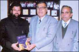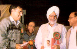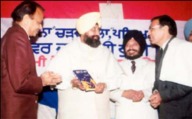 | Janab Jigar Jalandhri presenting book 'Gul-O-Khar' to S. Pratap Singh Bajwa, Public Relation Minister, Punjab |
