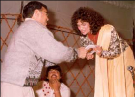 | Janab Jigar Jalandhri presenting book 'Gul-O-Khar' to renowned Ghazal Singer Ms. Pinaz Misani |