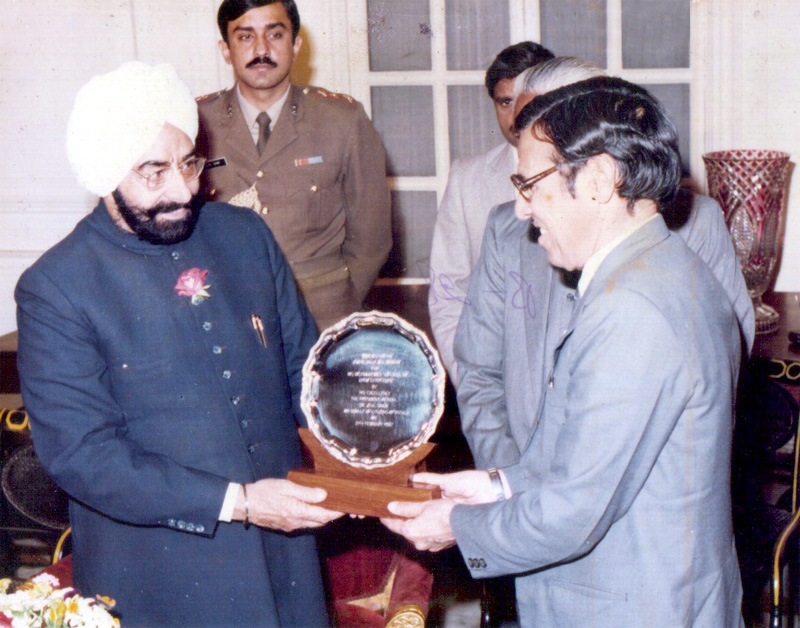 Janab Jigar Jalandhari recieving President Award from President of India Giani Zail Singh (1987)