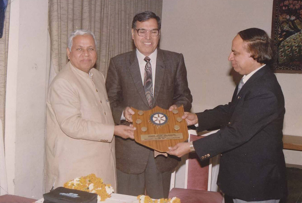 Sh. Vijay Kumar Chopra and Sh. S.V. Hans honouring Janab Jigar Jalandhri with Rotary International Literary Award (1990)