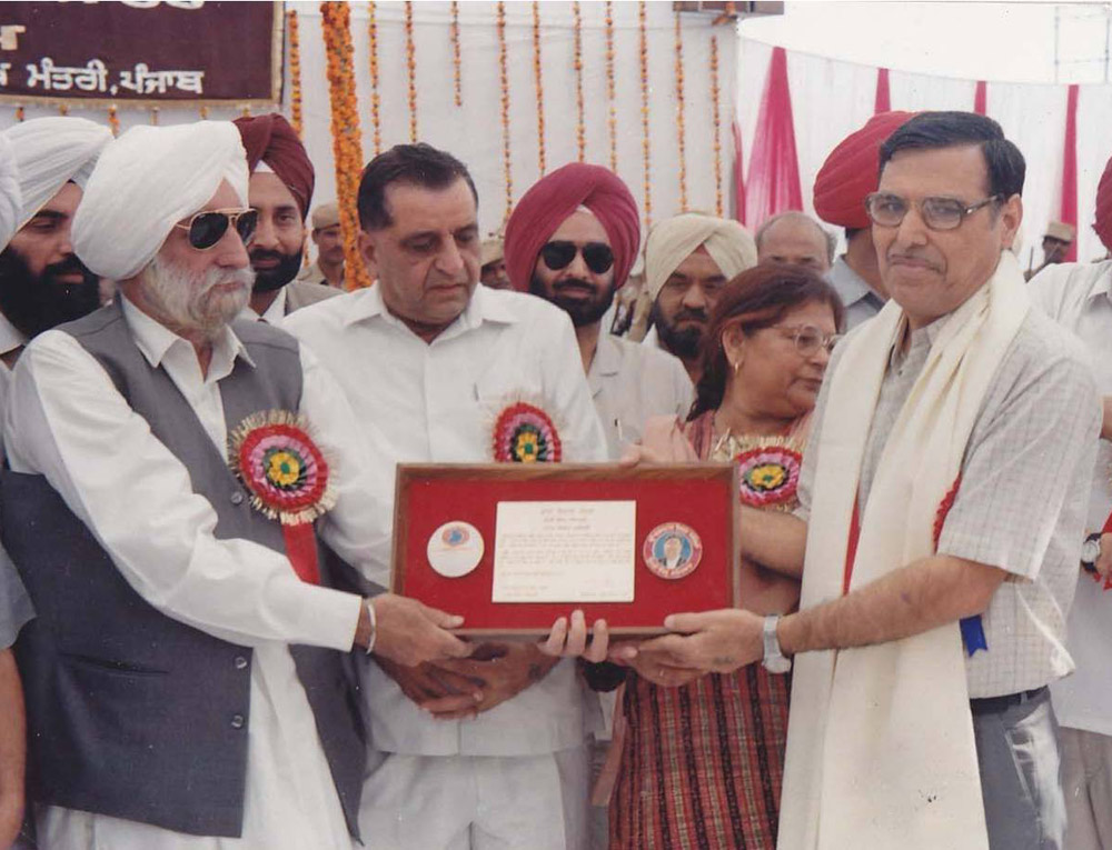 Janab Jigar Jalandhri receiving 'Shiromni Sahityakar Award' from Punjab Chief Minister S. Beant Singh (1990)