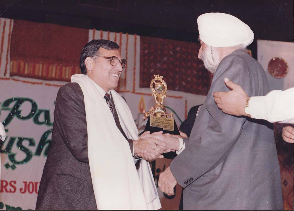 Punjab Chief Minister S. Beant Singh honouring Janab Jigar Jalandhri on the occasion of Indo-Pak Mushaira (1995)